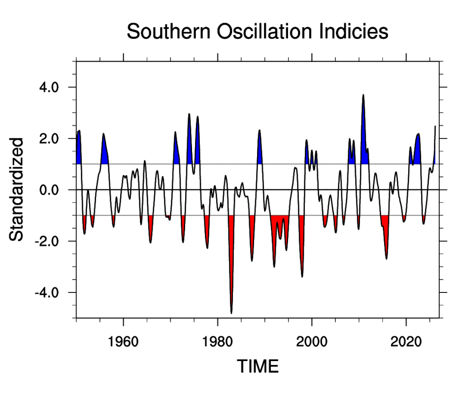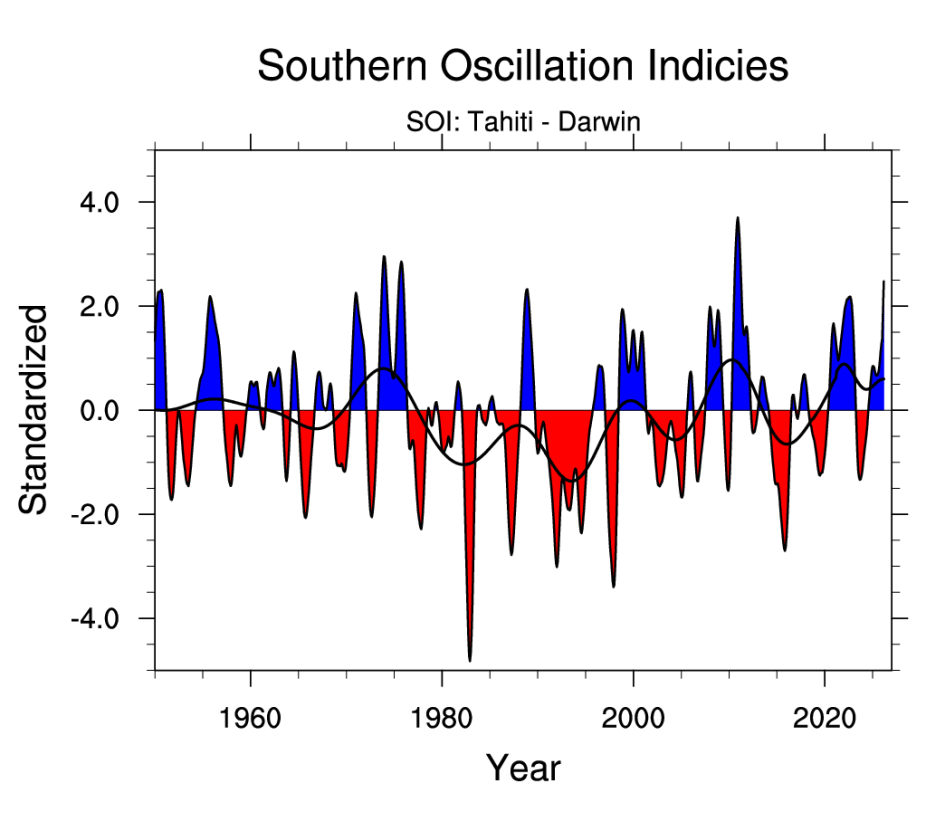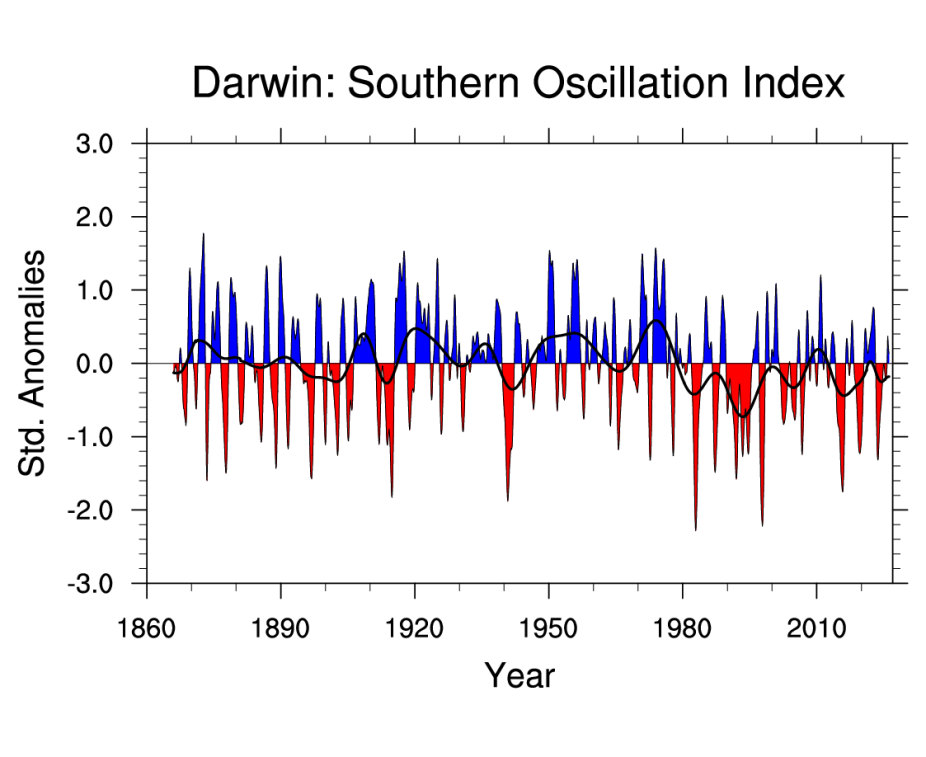 Trenberth, Kevin & National Center for Atmospheric Research Staff (Eds). Last modified "The Climate Data Guide: Southern Oscillation Indices: Signal, Noise and Tahiti/Darwin SLP (SOI).” Retrieved from https://climatedataguide.ucar.edu/climate-data/southern-oscillation-indices-signal-noise-and-tahitidarwin-slp-soi on 2026-04-30.